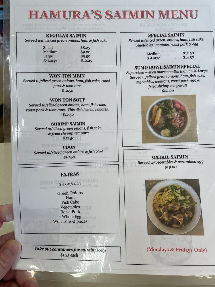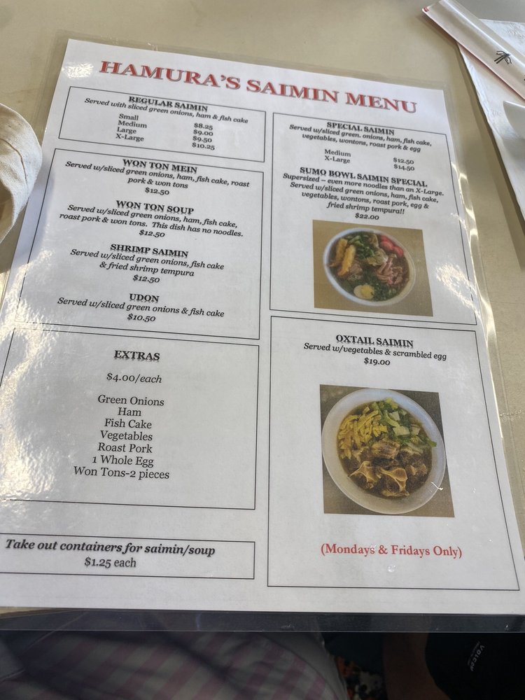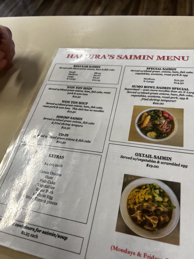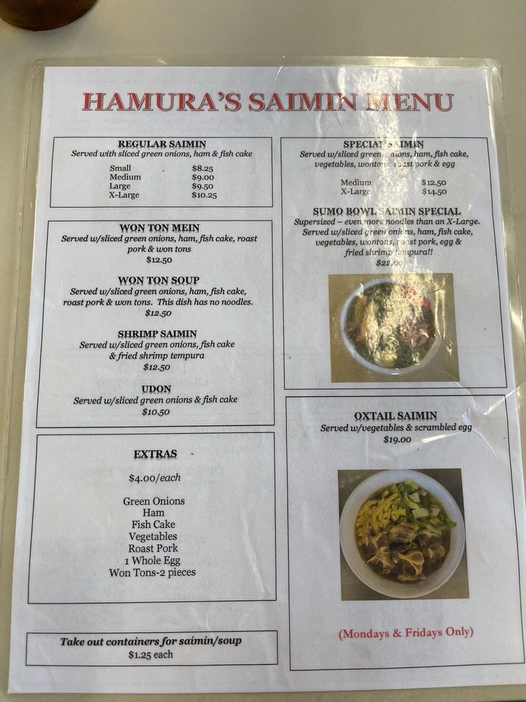 Hamura Saimin Menu