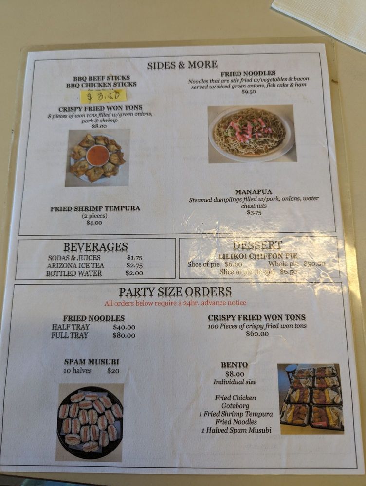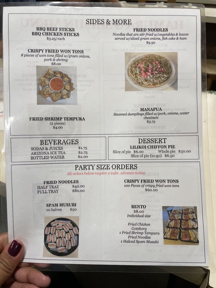 Don't miss out on their popular lilikoi chiffon pie for dessert or refreshing sodas and juices to complement your meal. Hamura Saimin's nostalgic charm and delicious offerings make it a must-visit spot for those seeking authentic, affordable Hawaiian-Japanese cuisine.